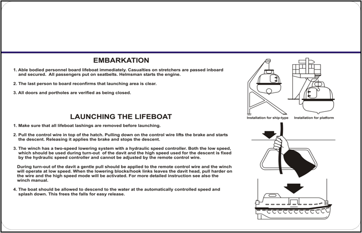 740mm x 870mm – 29.1” x 34.2” crew muster with removable Station display for designated Muster areas for personnel.